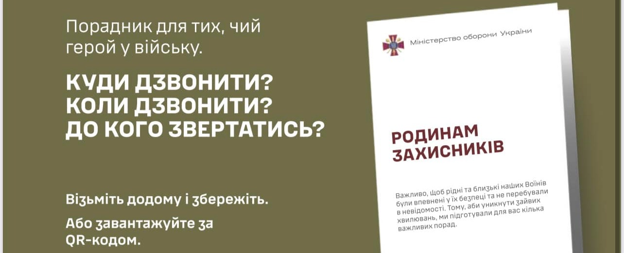 Міністерством оборони України розроблено інформаційну пам'ятку «Родинам захисників»